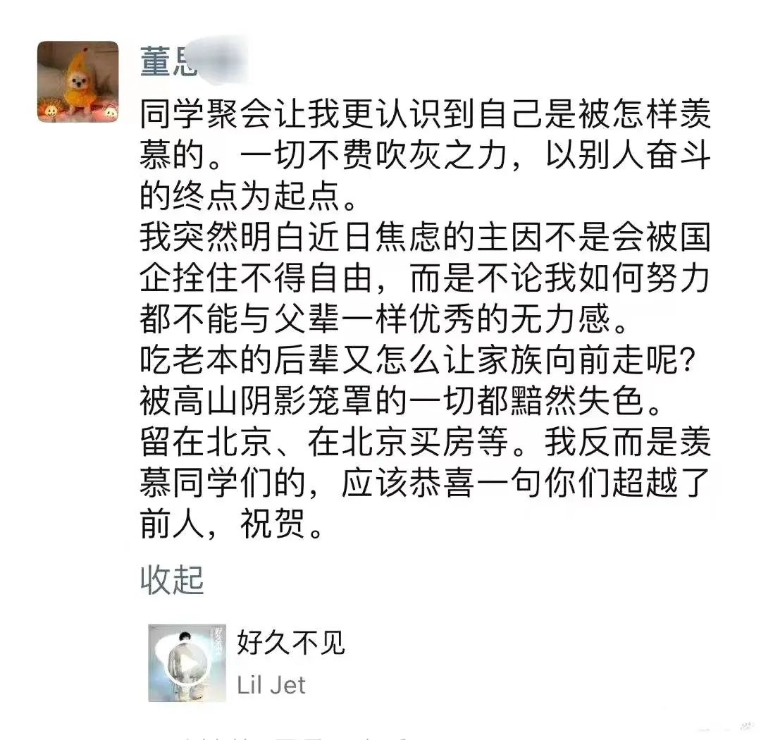 董小姐在社交平臺(tái)上高高在上的優(yōu)越感,在睥睨眾生中映襯出我們這些打工人的窘迫與寒酸。