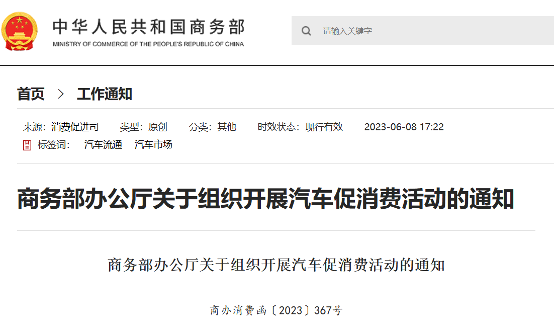 日前,商務部發(fā)布關于組織開展汽車促消費活動的通知。