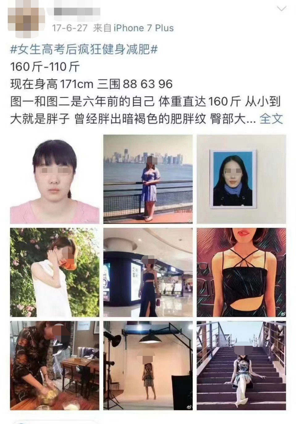 曾在2017年曬出了自己體重160斤的照片,并聲稱用了6年時間減肥,暴瘦到了110斤。