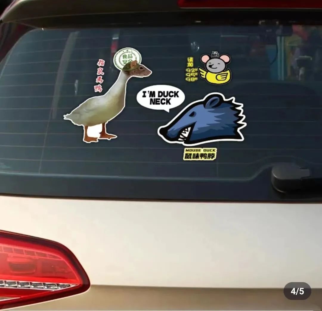 指向電商渠道,已經(jīng)有店鋪在售賣“指鼠為鴨”、“鼠味鴨脖”等車貼,網(wǎng)友設(shè)計的“鼠鼠鴨”手辦更是充滿了藝術(shù)感。