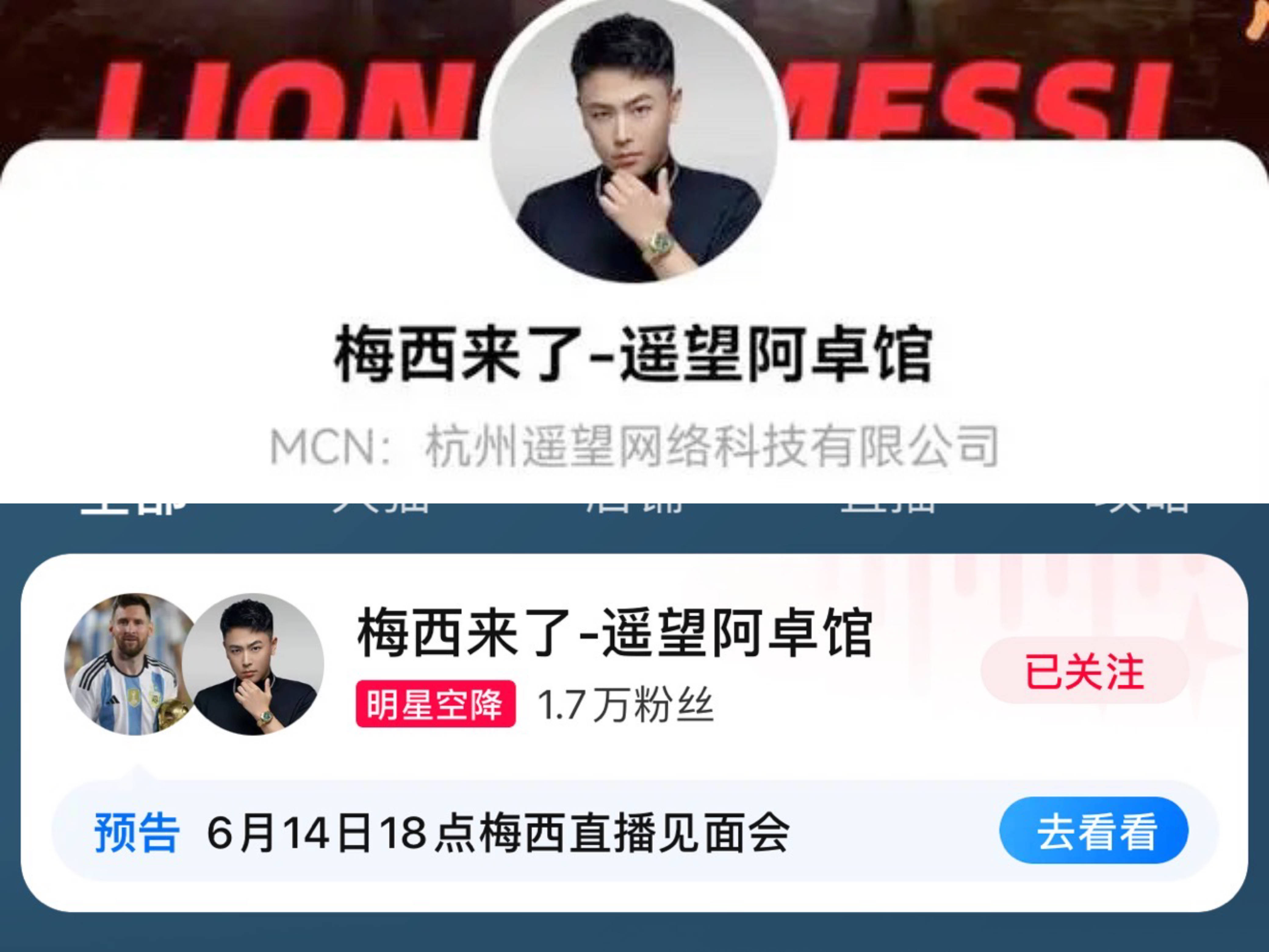 淘寶直播間遙望阿卓館資料顯示,梅西淘寶直播見面會名為“梅西來了遙望有球必應(yīng)”,為梅西中國非賽事個人直播獨家平臺,開播時間定為6月14日17點05分,現(xiàn)已開啟預(yù)約直播。