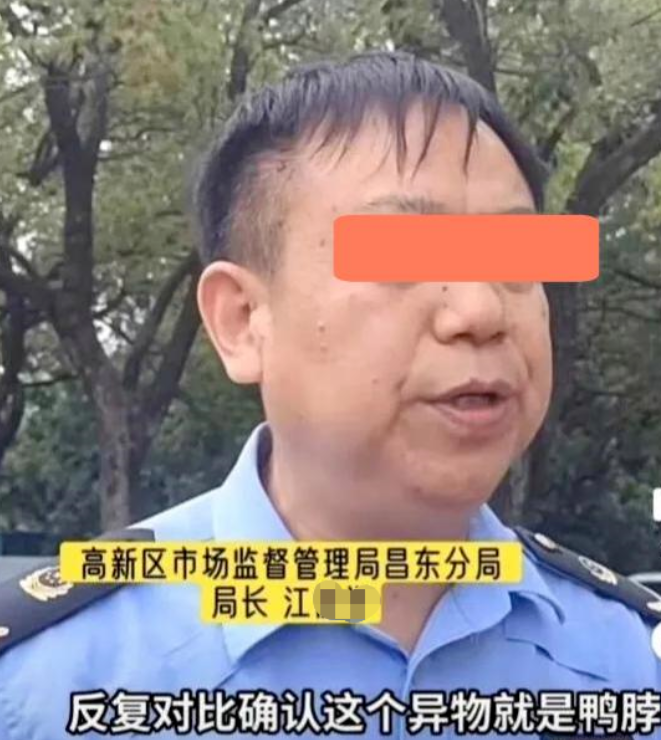 中快餐廳第一時間就拿下了市場監(jiān)督管理局負(fù)責(zé)人,負(fù)責(zé)人來到現(xiàn)場,既沒有去追查異物去了哪里,也沒有去了解學(xué)生點的菜到底有沒有鴨脖,他們僅憑幾張照片比對,就得出了異物是鴨脖的結(jié)論。