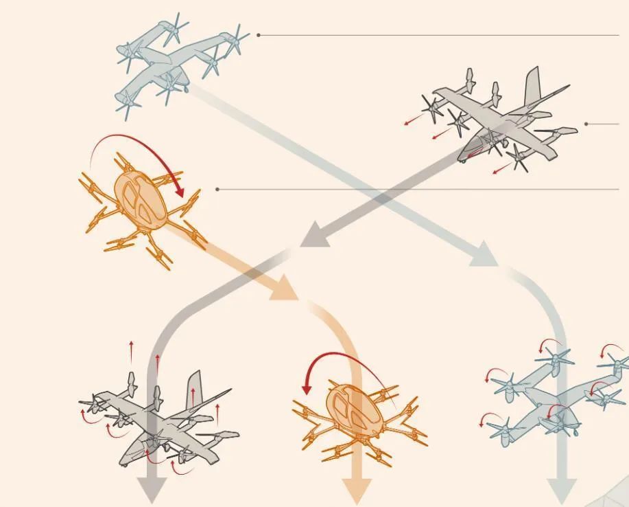 ② 目前正在開發(fā)的空中出租車可分為三大類,分別是多旋翼飛行器、矢量推力飛行器以及升降加巡航飛行器。