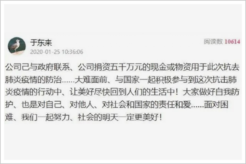 感動全網(wǎng)的中國好老板于東來:我宣布退休!