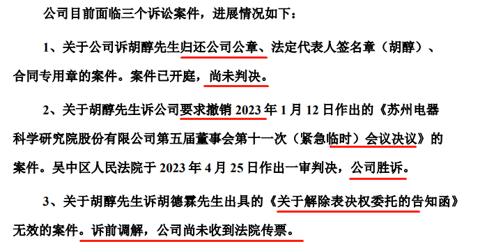 胡醇要求撤銷公司罷免其職務(wù)一案敗訴,但胡醇再度向蘇州中院提起上訴,目前已立案受理。