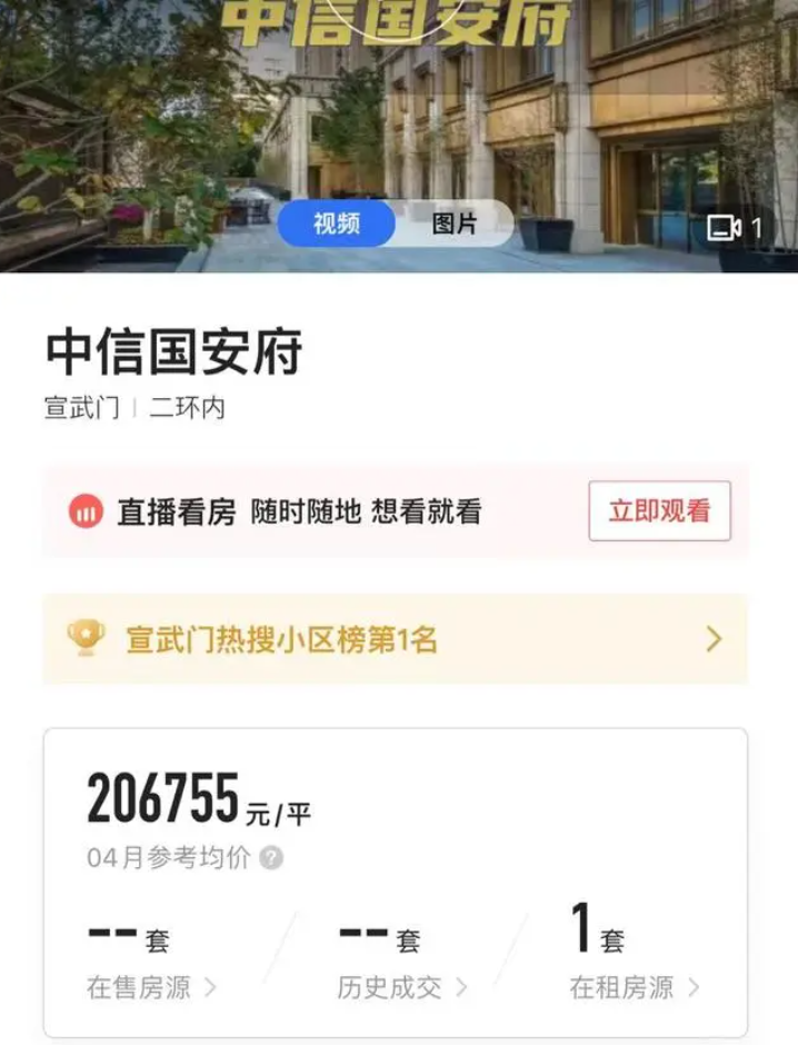 6月中旬時,中信國安府一期掛出了一套二手房,單價高達25.5萬元/平方米,而現(xiàn)在新房開盤均價15萬多......