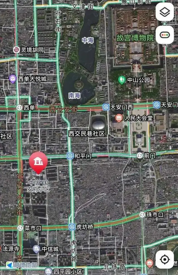 中信國安府二期位于西城區(qū)二環(huán)里的宣武門,距離天安門僅1.5千米,距離國家大劇院880米,距離金融街1.8千米左右,毗鄰西單、 大柵欄等商圈,相比于今年初另一西城區(qū)新盤中信城四期更靠近城中心,小區(qū)頂層的房子甚至可以俯瞰故宮。