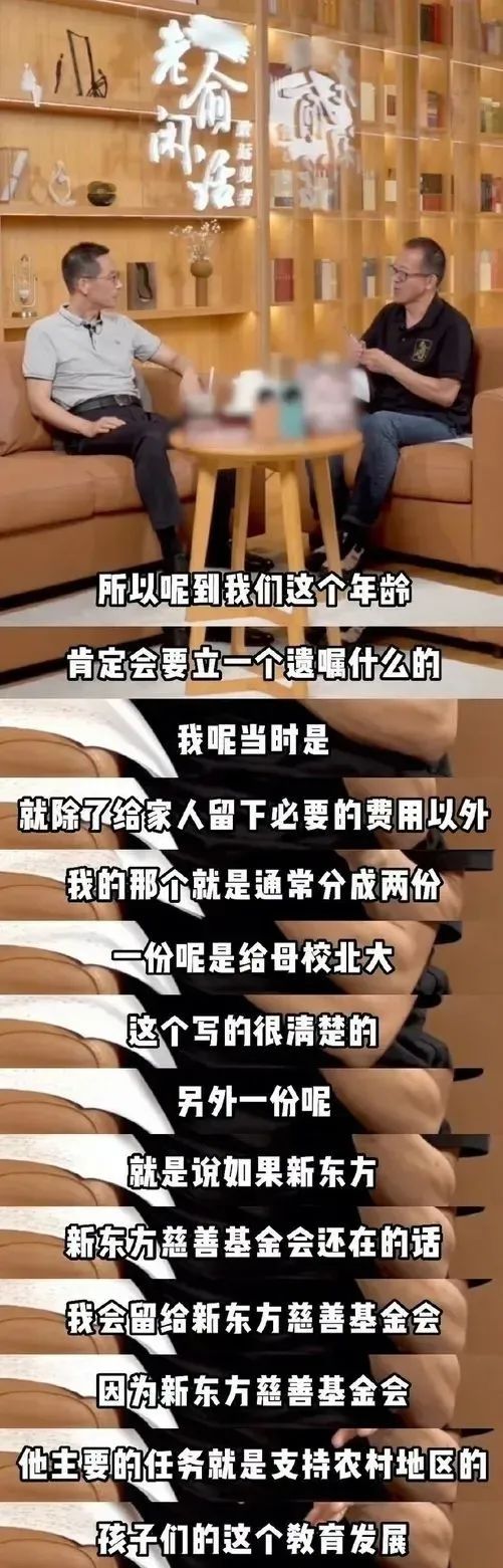 前兩天,新東方創(chuàng)始人俞敏洪在一次訪談中,首次透露了自己的遺產(chǎn)分配: