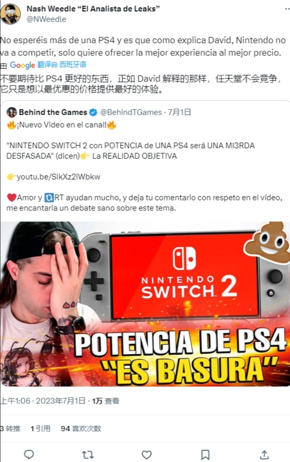 他借用了另一個YouTuber的話,指出:任天堂不會(與其他兩家正面)競爭,它只是想以最優(yōu)惠的價格提供最好的體驗。