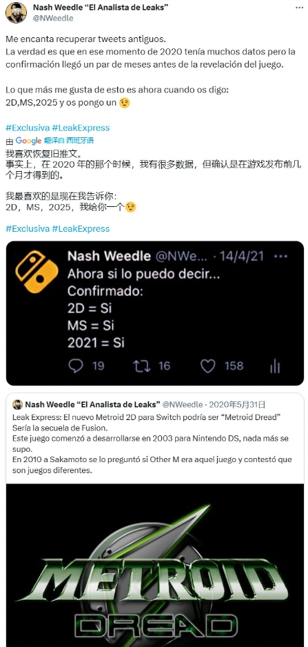 他網(wǎng)絡(luò)新聞報道的準確性很高,此前曾在2020年5月準確泄露了《銀河戰(zhàn)士:生存恐懼》的標題,并在今年1月21日的一條推文中暗示這部作品的開發(fā)商MercurySteam將在2025年發(fā)布一部新的2D《銀河戰(zhàn)士》作品,因此有網(wǎng)友猜測拿到下一代Switch開發(fā)套件的工作室可能是MercurySteam。