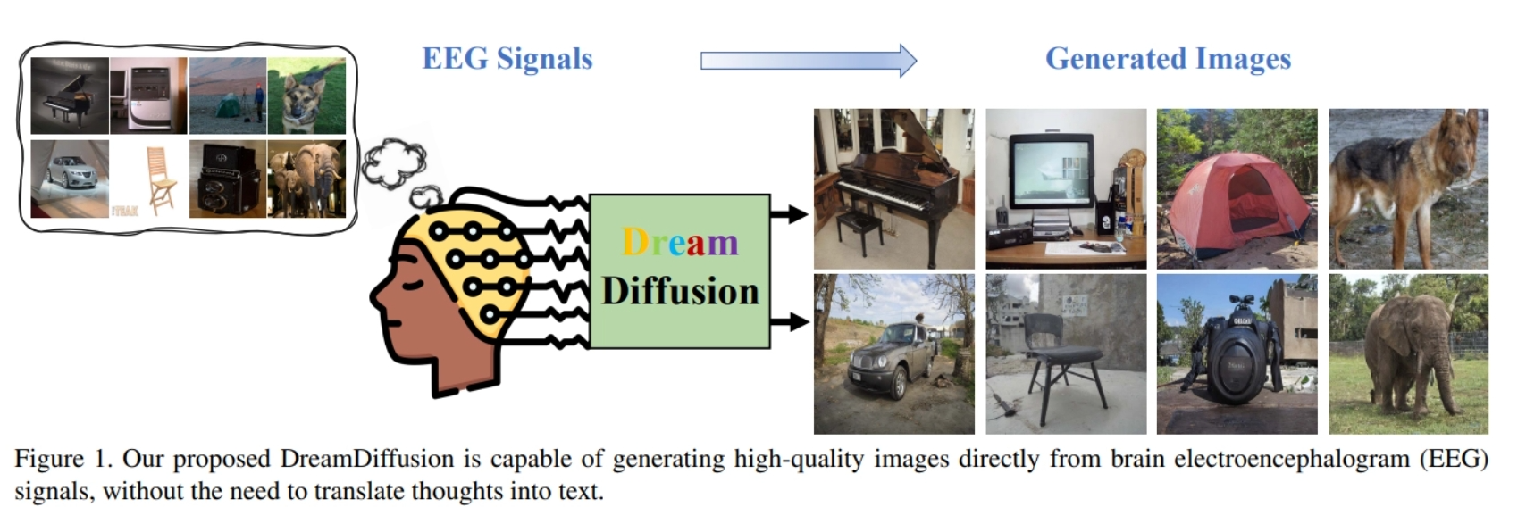 7月5日消息,清華大學(xué)深圳國(guó)際研究生院、騰訊人工智能實(shí)驗(yàn)室(AILAB)和鵬城實(shí)驗(yàn)室的研究人員近日發(fā)表論文稱,研究團(tuán)隊(duì)開(kāi)發(fā)了一種名為DreamDiffusion的圖像生成模型,可以通過(guò)腦電圖(EEG)信號(hào)直接生成高質(zhì)量圖像。相關(guān)論文發(fā)表在美國(guó)康奈爾大學(xué)的在線學(xué)術(shù)論文平臺(tái)arXiv上。