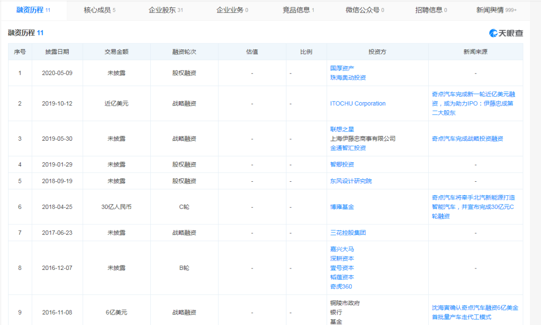 從融資歷程來看,奇點汽車成立初期曾備受資本市場青睞。天眼查顯示,2015年以來,奇點汽車累計獲得11輪融資,投資方包括英特爾資本、奇虎360、博雍基金、韜蘊資本、安徽銅陵市政府、伊藤忠商事、聯(lián)想之星等。且早在2018年,奇點汽車累計融資額便達到170億元。