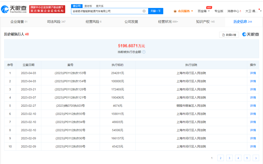 另據(jù)天眼查顯示,目前,奇點汽車被執(zhí)行總額超5196.6萬元,終本案件中未履行總額超732.4萬元。此外,公司還被下發(fā)多條限制消費令,并多次成為失信被執(zhí)行人。