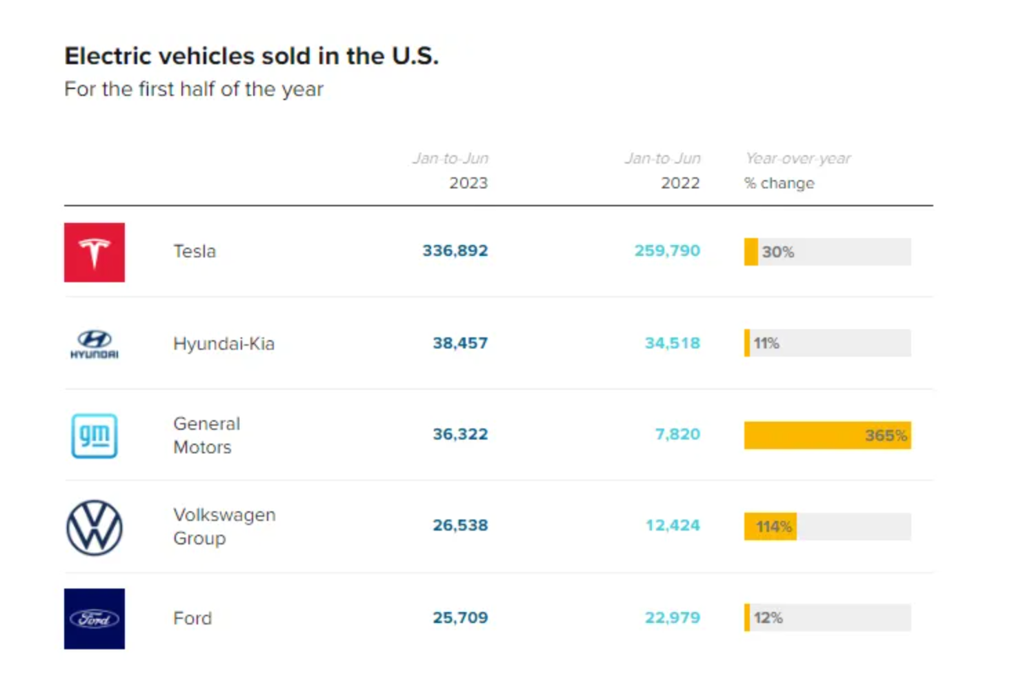 在美國電動(dòng)汽車市場,傳統(tǒng)車企的汽車銷量已經(jīng)超過去年,但仍難以縮小與行業(yè)老大特斯拉的差距。