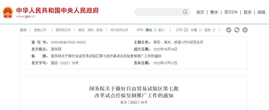 國務(wù)院關(guān)于做好自由貿(mào)易試驗(yàn)區(qū)第七批
