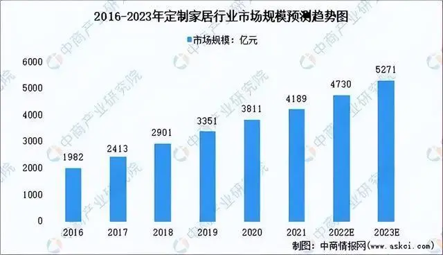 2021年中國定制家居行業(yè)的市場規(guī)模已經(jīng)突破4000億元,2016-2021年復合增長率達16%,行業(yè)保持良好的發(fā)展態(tài)勢。中商產(chǎn)業(yè)研究院預(yù)計2023年中國定制家居市場規(guī)模能突破5000億元。能夠提供便捷、周到的的服務(wù),以及樣式齊全的產(chǎn)品,成為家居門店爭奪主流客戶的核心競爭力。