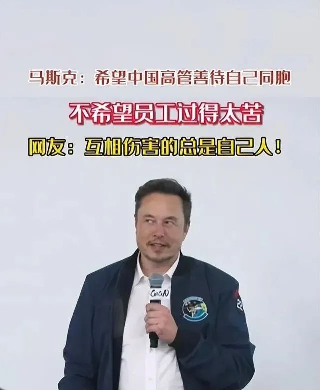 馬斯克說過的另一句話也曾引發(fā)過大量的討論,她在特斯拉的總部給中國高管們了一個建議:希望中國高管要善待自己的同胞!善待中國同胞,這是令人感動的。但這話從一個外國人馬斯克嘴里說出來,總感覺很是別扭。