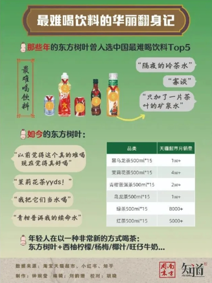 比如曾上榜“全國(guó)最難喝飲料TOP5”的東方樹葉,如今卻成為了無糖茶龍頭品牌,是很多年輕人的新寵飲料——他們?cè)?jīng)無糖不歡,現(xiàn)在竟主動(dòng)啜飲一口苦味。無糖、零卡、即飲、原葉提取……這些既是眾多茶飲的賣點(diǎn),也是當(dāng)下年輕人的消費(fèi)趨勢(shì)。