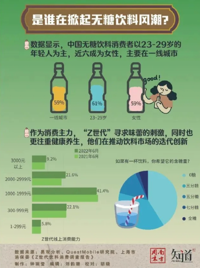 有報(bào)告研究發(fā)現(xiàn),中國(guó)無糖飲料消費(fèi)者,以23-29歲的年輕人為主,近六成為女性,主要聚集在一二三線城市。