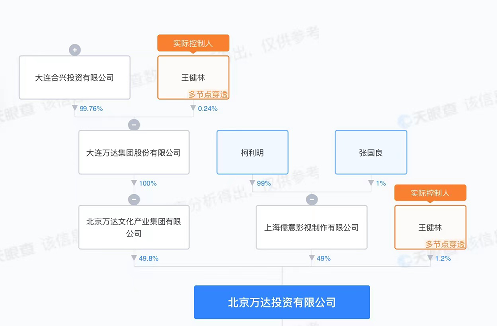 天眼查股權(quán)資料顯示,此次轉(zhuǎn)讓已經(jīng)完成,7月20日,公司完成投資人變更。交易完成前,王健林以及萬達(dá)集團(tuán)旗下北京萬達(dá)文化產(chǎn)業(yè)集團(tuán)有限公司共同擁有北京萬達(dá)投資的全部股權(quán)。交易完成以后,北京萬達(dá)投資由北京萬達(dá)文化產(chǎn)業(yè)集團(tuán)有限公司持股49.8%,由上海儒意影視持股49%。