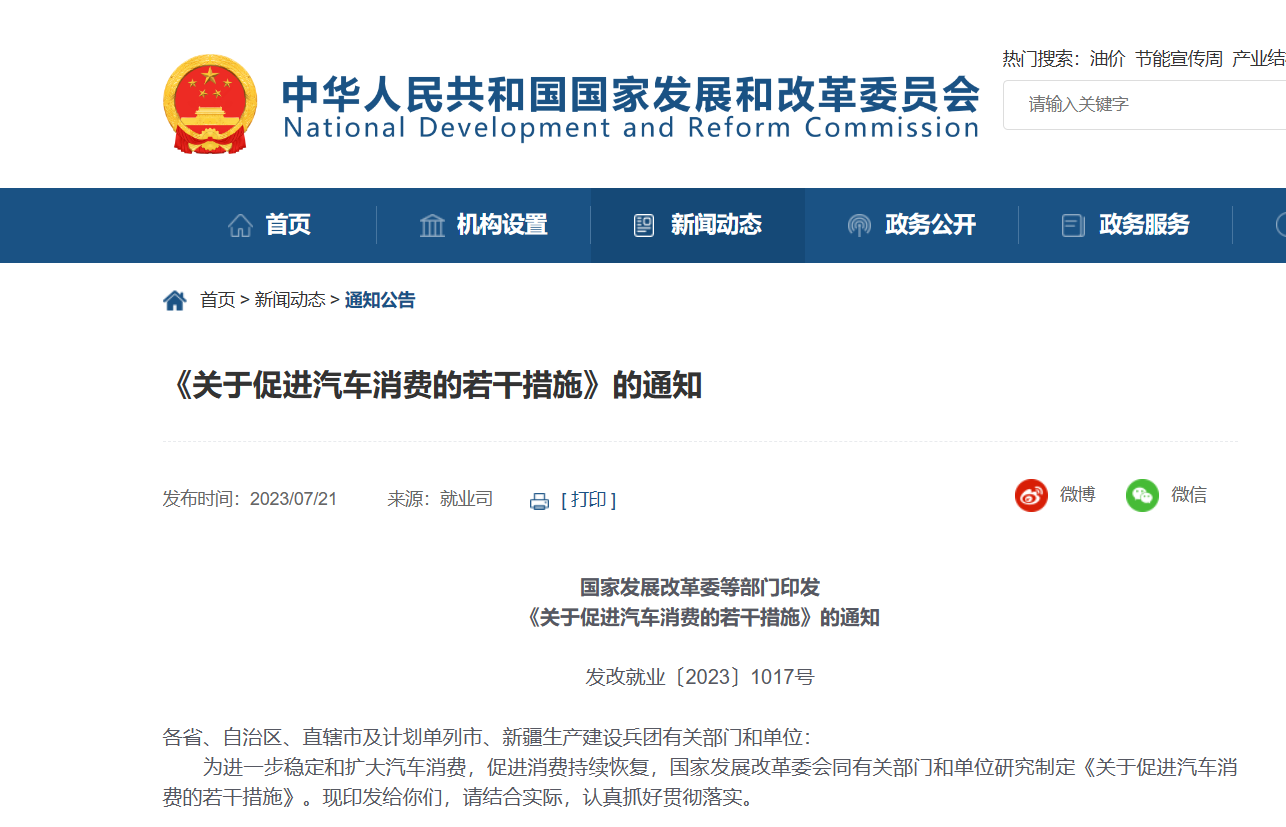 日前,國家發(fā)展改革委、工業(yè)和信息化部、公安部、財(cái)政部、住房城鄉(xiāng)建設(shè)部、交通運(yùn)輸部、商務(wù)部、中國人民銀行、海關(guān)總署、稅務(wù)總局、市場監(jiān)管總局、國管局、國家能源局印發(fā)《關(guān)于促進(jìn)汽車消費(fèi)的若干措施》(下稱《措施》)。