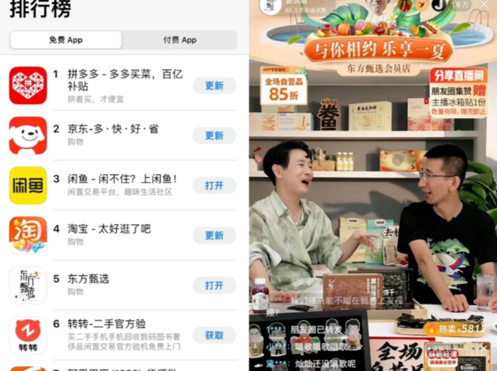 因禍得福,東方甄選APP這兩天熱鬧極了,“全場自營產(chǎn)品85折”的力度吸引了幾十萬人沖進APP直播間。