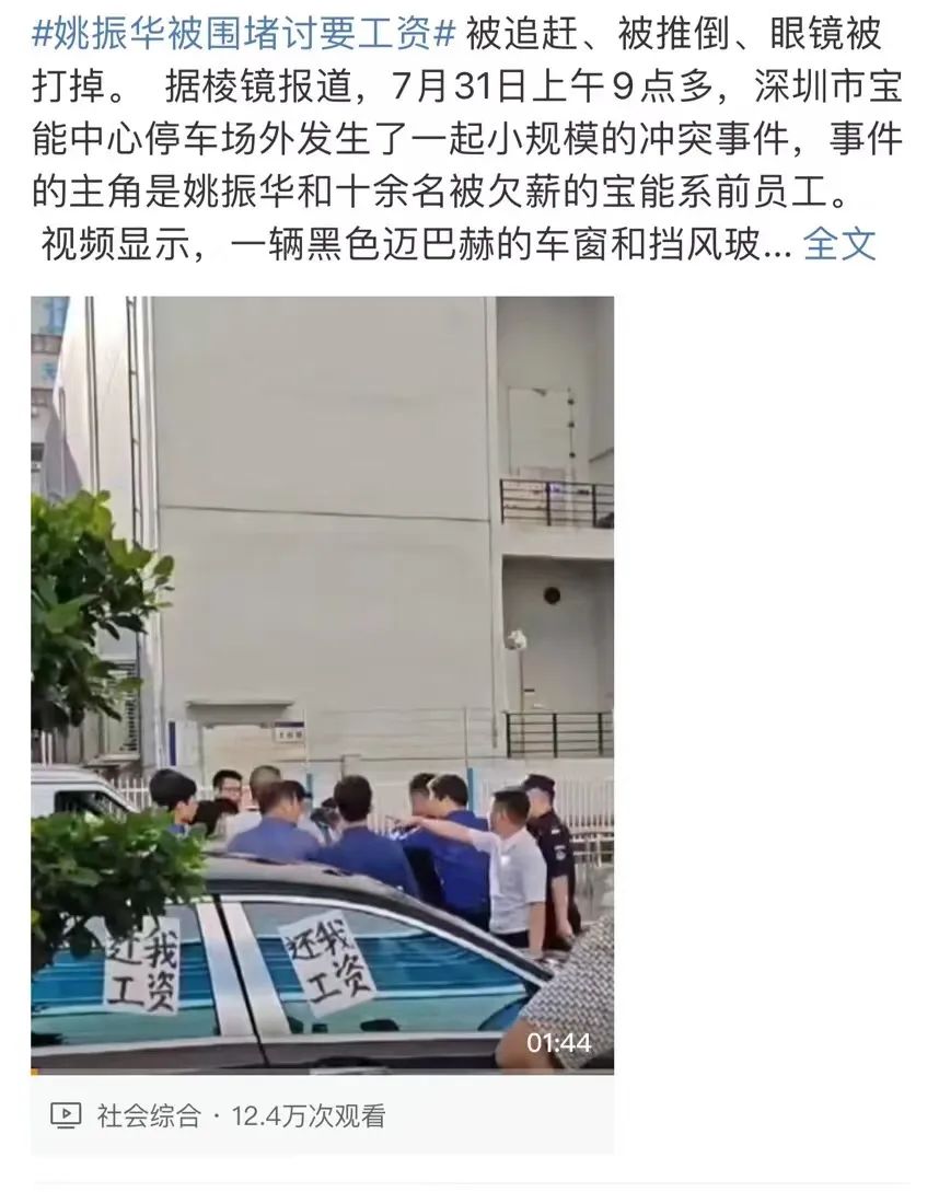 今日,有大V在網(wǎng)上曬出一則視頻,配的文案是“寶能姚老板被追趕、被推倒、眼鏡被打掉”。