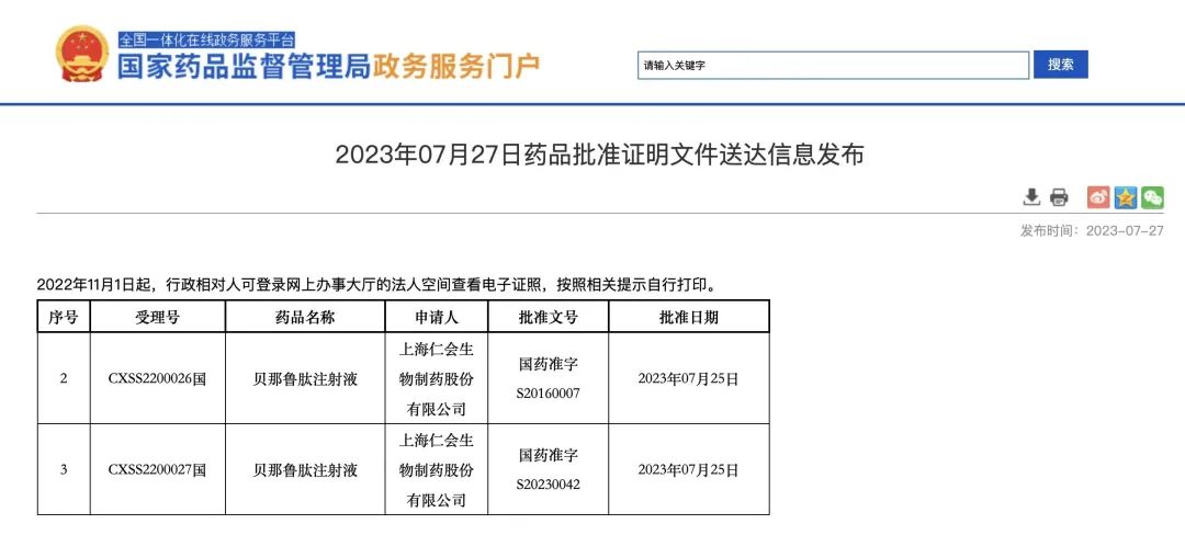 而且后來剛剛獲準(zhǔn)的貝那魯肽是 1 類藥,是仁會(huì)生物的原研產(chǎn)品。