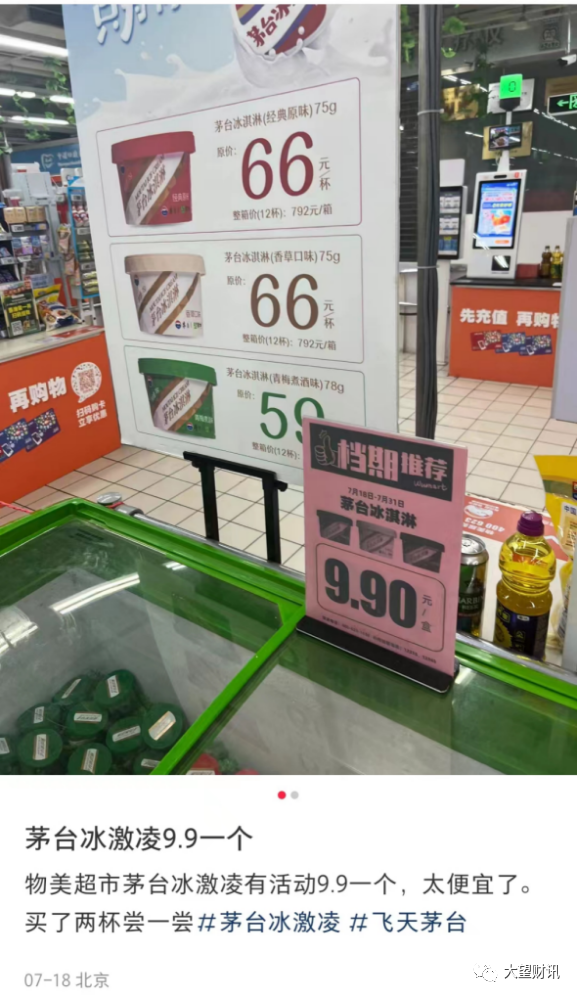 但今年7月底,有網(wǎng)友在公開平臺(tái)上透露,原價(jià)66元的一盒冰淇淋現(xiàn)價(jià)只有9.9元。在小紅書等渠道搜索大望財(cái)務(wù)新聞后發(fā)現(xiàn),北京、遼寧、湖南等地出現(xiàn)了類似的營(yíng)銷活動(dòng),陜西也有“買三盒口味相同的八喜冰淇淋送一盒茅臺(tái)冰淇淋”的活動(dòng)。