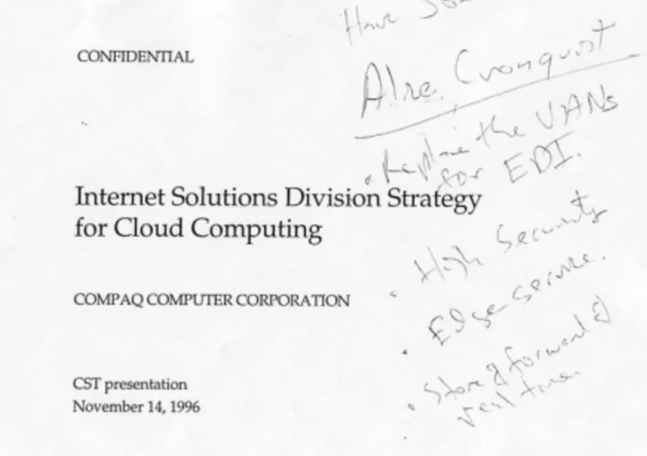 一九九六年,康柏公司的一批技術總監(jiān)首次使用Cloud,討論計算業(yè)務的發(fā)展。 “Computing”一詞被認為是商業(yè)計算。 轉移Computing的方向。