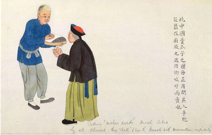 賣西瓜子圖 資料來源:《街頭各行業(yè)人物》,19世紀(jì)外銷畫,大英圖書館藏。