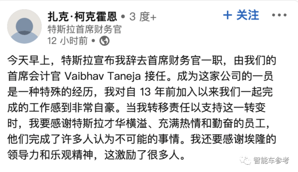 就挺突然的,特斯拉功勛CFO,馬斯克繼承人的潛在人選,Zack 扎克(扎克·柯克霍恩),突然辭職了。