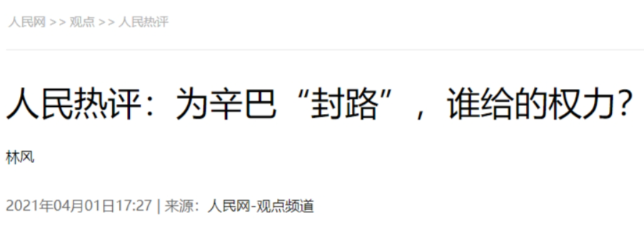 2021年4月,人民網(wǎng)曾發(fā)布過一篇評論文章《人民熱評:為辛巴“封路”,誰給的權(quán)力?》,矛頭直指辛巴當時“復(fù)出直播”派保安封路的事件:“對于任何網(wǎng)紅來說,如果老以丑聞糗事、出格言行而‘紅’,注定是一個相當危險的信號。辛巴,好自為之。”