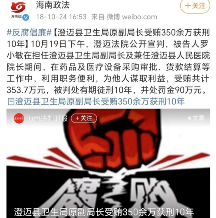 除了他之外,前幾天廣東某醫(yī)院,院長被查出受賄2980萬。