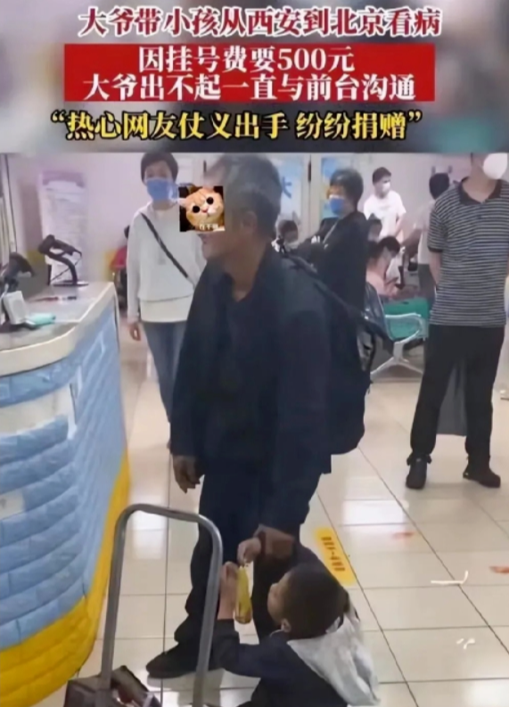 早前北京某醫(yī)院,大爺帶著孫子從西安趕來看病。