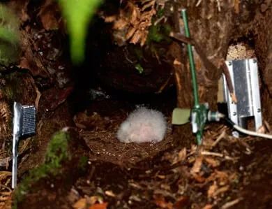 在準(zhǔn)備還回雛鳥時(shí),假蛋會(huì)發(fā)出聲音提醒雌鳥。準(zhǔn)備充分的雌鳥會(huì)在雛鳥剛出生的那幾天里給予更好的照顧| Stu Cockburn, DOC