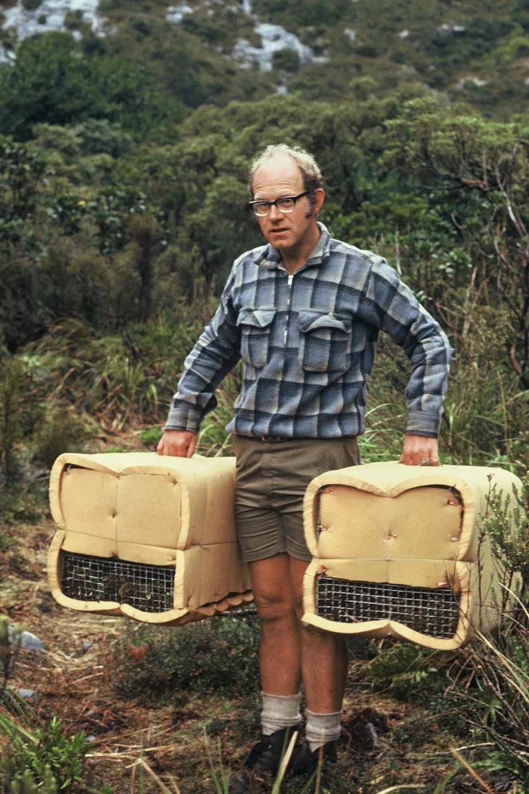 1974年, 鳥類學(xué)家 唐· 默頓 (Don Merton)參與轉(zhuǎn)移兩只鸮鸚鵡 |Department of Conservation