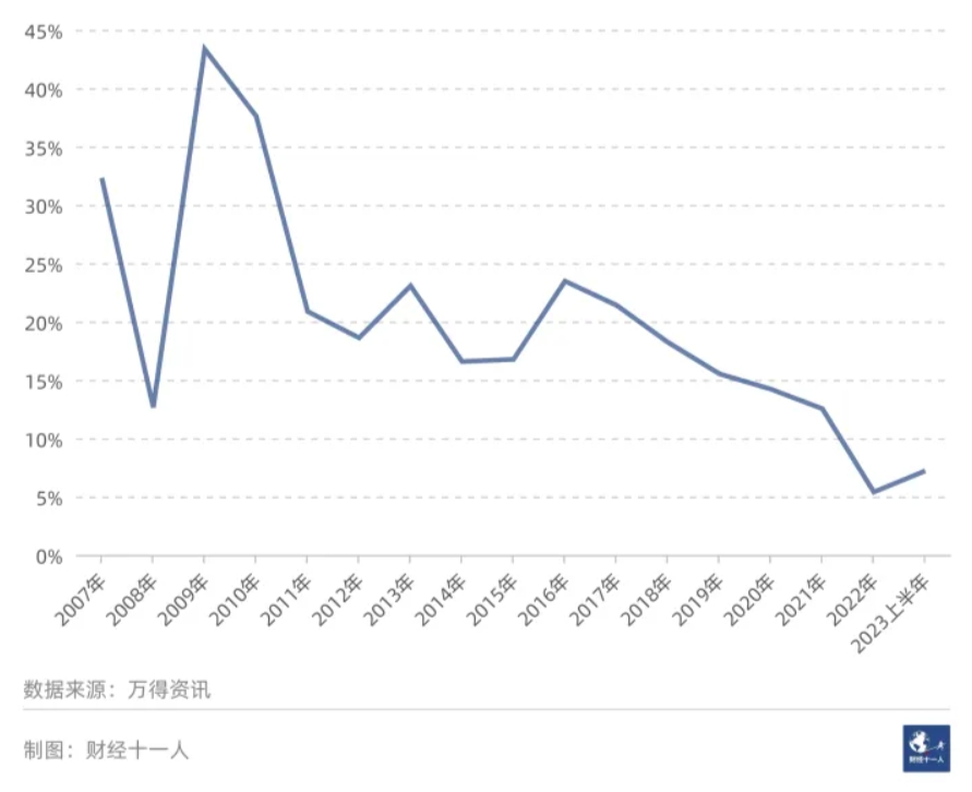從2010年到2019年的10年間,中國住戶貸款余額一直保持15%以上的增速。但從2020年開始,此數(shù)值跌破15%,2022年更是降到了5.4%。