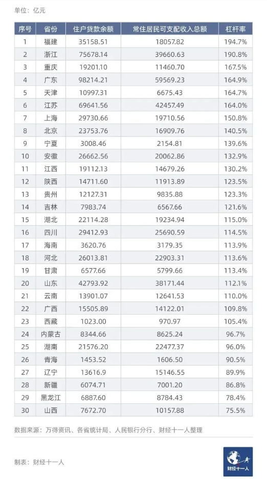 貸款加杠桿對于經(jīng)濟活力意義重大,目前各省的居民貸款情況如何?