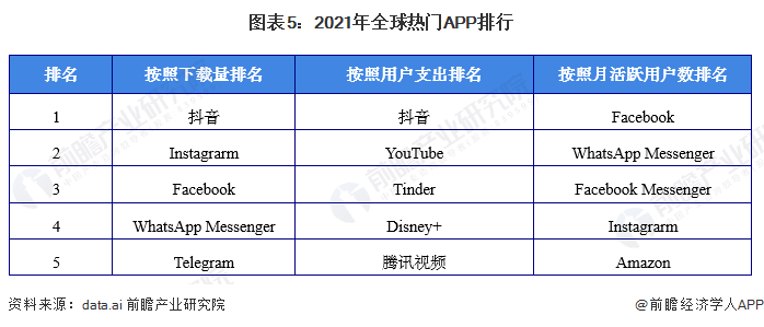 2021年,抖音的下載量和用戶支出都在全球APP中排名第一。