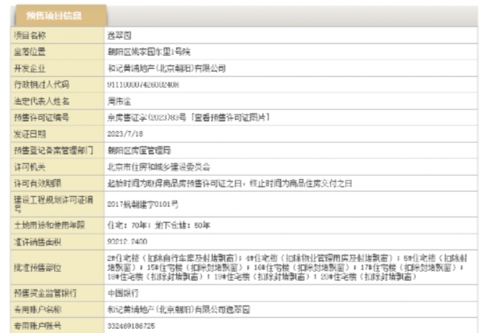 近日,據(jù)北京市住建委官網(wǎng)披露,“御翠園”位于北京市朝陽區(qū)姚家園東里1號(hào)院,備案名“逸翠園”,由長江實(shí)業(yè)旗下和記黃埔地產(chǎn)(北京朝陽)有限公司開發(fā)。該項(xiàng)目于今年7月18日獲得預(yù)售證。