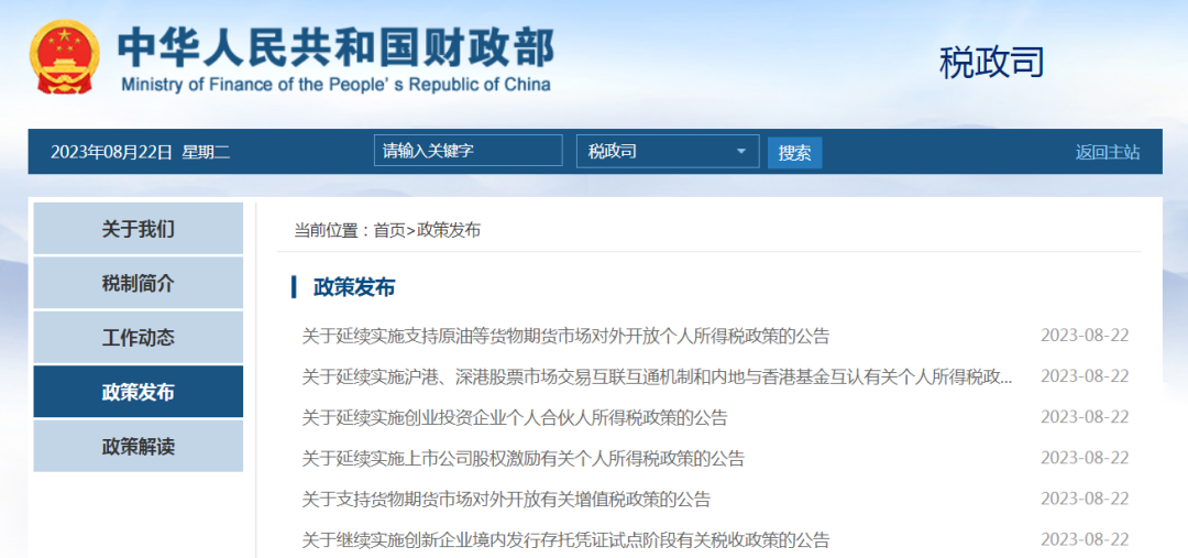 22日,財(cái)政部官網(wǎng)公布一批有利于資本市場持續(xù)健康發(fā)展的稅收優(yōu)惠政策,包括支持創(chuàng)新企業(yè)境內(nèi)發(fā)行存托憑證、貨物期貨市場、創(chuàng)投企業(yè)合伙人、滬深港通等領(lǐng)域的稅收政策,相關(guān)政策執(zhí)行至2025年或2027年底。