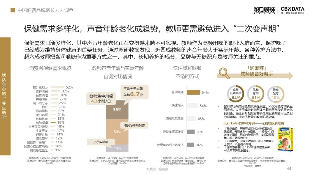 每個年齡段面臨的健康問題和營養(yǎng)補充需求,從青年到中年再到銀發(fā)人群都不一樣。“防患于未然”,除三餐外,“加一餐”逐漸成為補充營養(yǎng)的有效途徑。。但由于保健品購買知識還存在一定的學習門檻,市場上的保健品質(zhì)量良莠不齊。為了緩解消費決策過程中的困難,更多的消費者開始尋找更多有科研背書的健康補充劑。