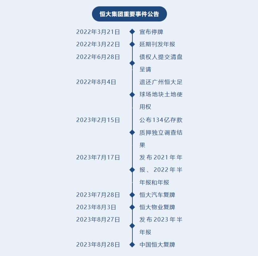 如今,恒大汽車、恒大物業(yè)和中國恒大已全面復(fù)牌,恒大債務(wù)重組會議、清盤呈請聆訊均不斷延期,這亦攸關(guān)恒大未來走向。