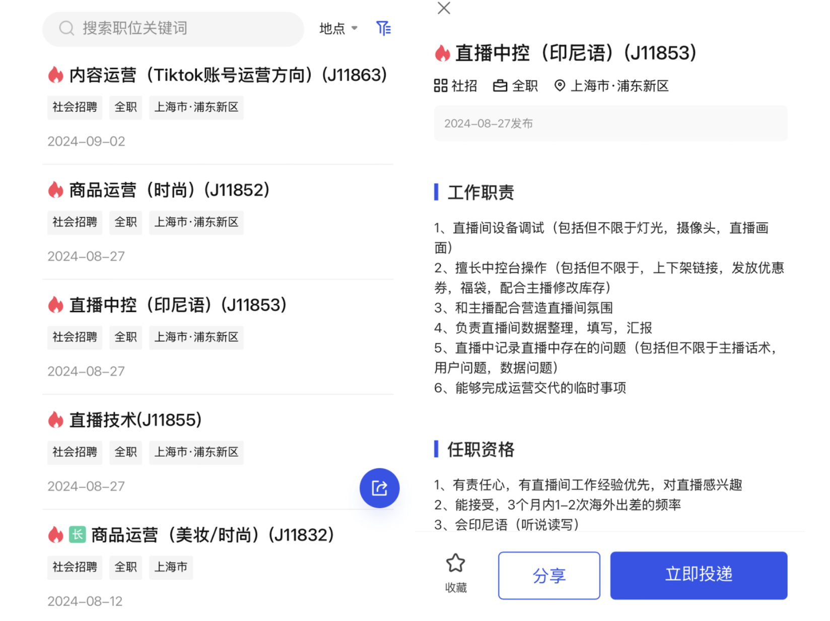 和競爭對手直接在海外搭建團(tuán)隊(duì)的方式不同,美ONE招聘的出海崗位大多位于國內(nèi),直接負(fù)責(zé)直播間的“直播中控”崗位工作地點(diǎn)則在上海。