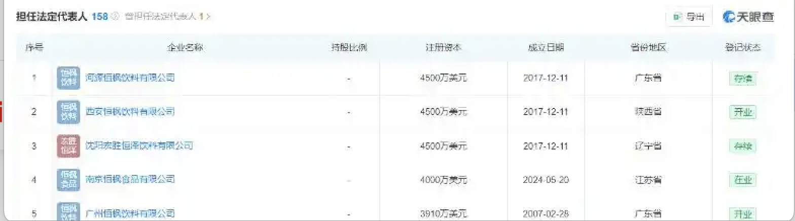 宗馥莉正式接手娃哈哈后,他也跟隨宗馥莉進(jìn)入娃哈哈集團(tuán)體系。截至目前,其在與娃哈哈關(guān)聯(lián)的180余家公司中擔(dān)任監(jiān)事。