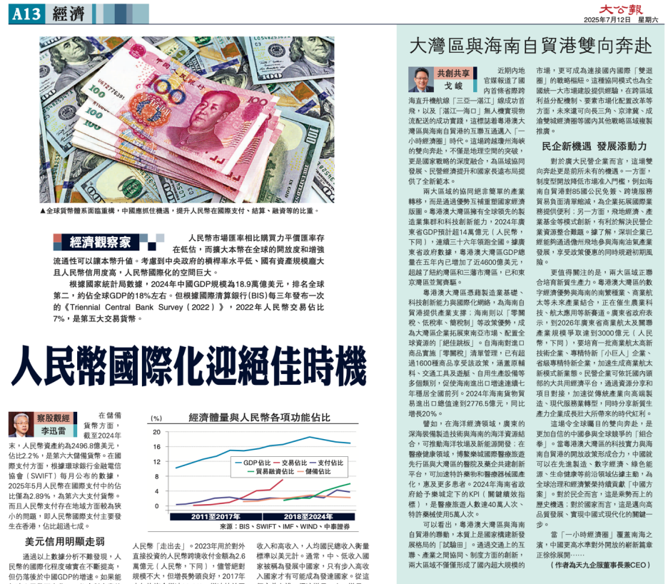這場令全球矚目的雙向奔赴,是更加自信的中國參與全球競爭的“組合拳”。當(dāng)粵港澳大灣區(qū)的科技實(shí)力與海南自貿(mào)港的開放政策形成合力,中國就可以在先進(jìn)制造、數(shù)字經(jīng)濟(jì)、綠色能源、生命健康等前沿領(lǐng)域占據(jù)主動,為全球治理和經(jīng)濟(jì)繁榮持續(xù)貢獻(xiàn)“中國方案”。對于民企而言,這是乘勢而上的歷史機(jī)遇;對于國家而言,這是邁向高品質(zhì)發(fā)展、實(shí)現(xiàn)中國式現(xiàn)代化的關(guān)鍵一步。