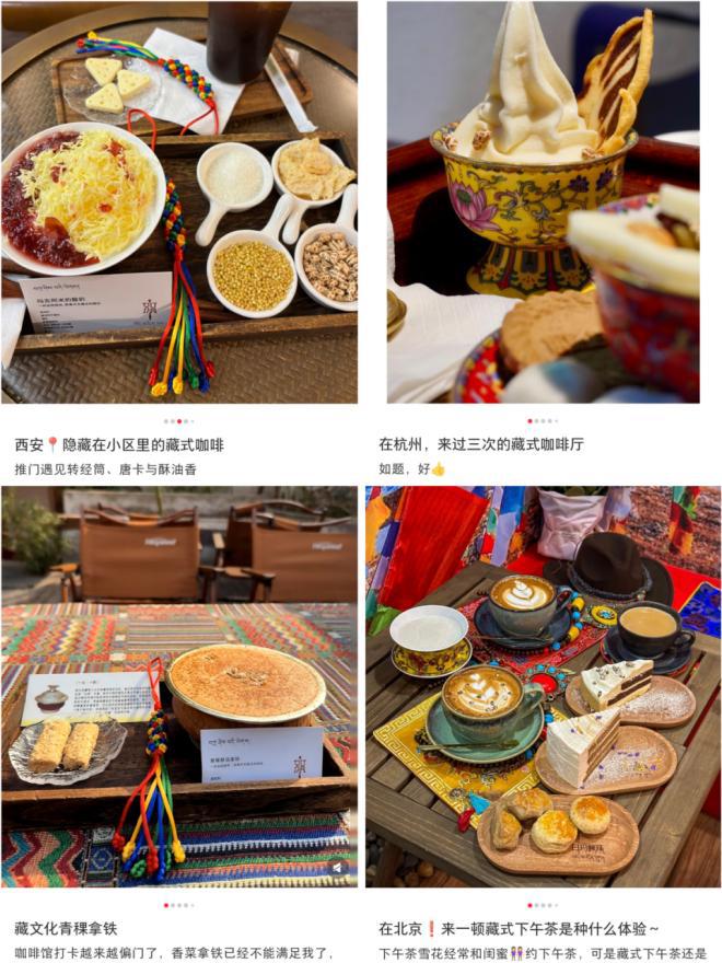 最近,市面上出現(xiàn)了一批藏式咖啡館。與普通咖啡館不同,從裝修到菜單,藏式咖啡館到處都透露著鮮明的藏族文化,通過西藏的器具擺件、繪畫服飾等,傳遞著藏文化的神圣調(diào)性。在口味上,藏式咖啡常用青稞、糌粑粉替代傳統(tǒng)糖漿,使咖啡奶蓋自帶麥芽香甜,青稞的谷物香與咖啡形成巧妙平衡;在小紅書上,“藏式咖啡”詞條已有近5千萬瀏覽,30萬討論。另有數(shù)據(jù)顯示,近五年拉薩咖啡館數(shù)量增長(zhǎng)超過320%。