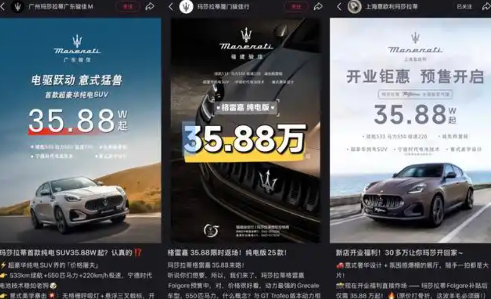 裸車只要35萬,價格對標小米YU7等新勢力車型,曾經(jīng)的“跑車皇后”瑪莎拉蒂,正通過經(jīng)銷商的“骨折式的降價”來挽救其在中國市場的銷量。近日,多地瑪莎拉蒂門店社交媒體發(fā)布海報稱,瑪莎拉蒂的SUV車型Grecale Folgore售價35.88萬起。有銷售顧問表示,35.88萬是裸車價,另外還需要加上一定的選配費用,最終落地大約在40萬元。瑪莎拉蒂2004年進入中國,曾在2017年迎來在華銷量巔峰賣了1.44萬輛。中國成為該品牌全球最大市場。2018年起瑪莎拉蒂銷量急轉(zhuǎn)直下,2024年在華僅售1209輛。