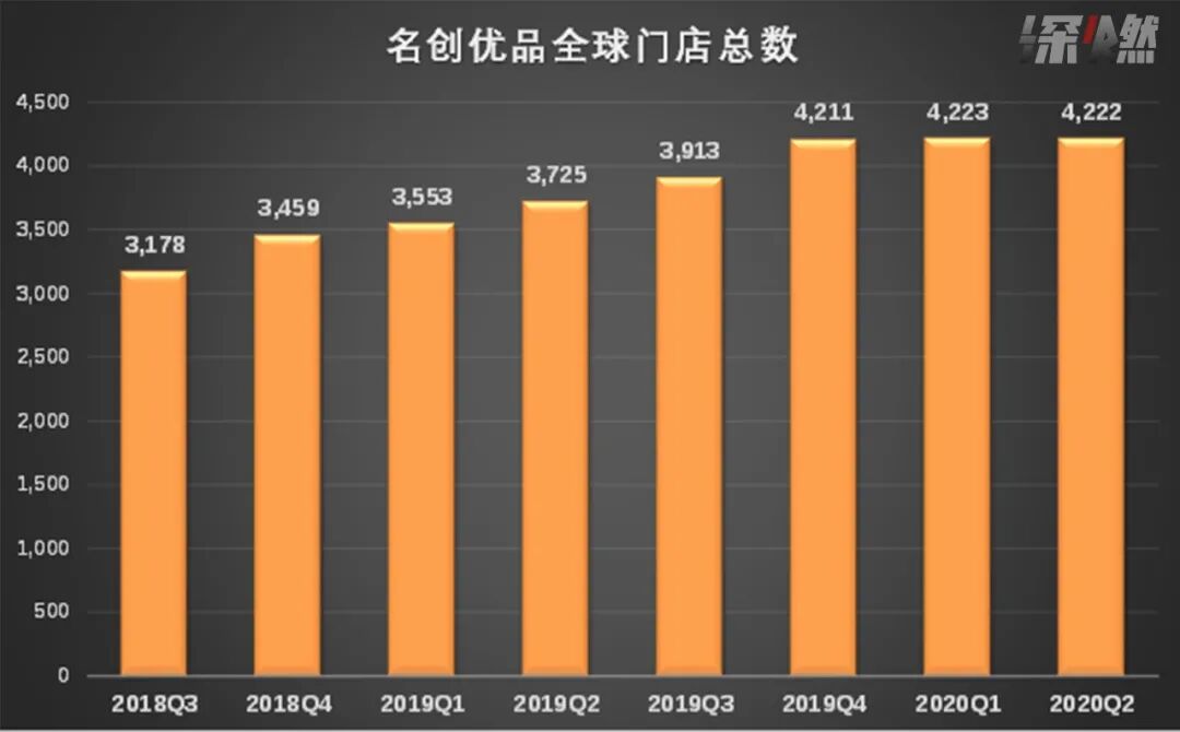 不停地開店,是名創(chuàng)優(yōu)品增長的重要方式。 截至2020年6月30日,成立7年的名創(chuàng)優(yōu)品在全球80多個國家共有4222家門店,其中中國有2533家。